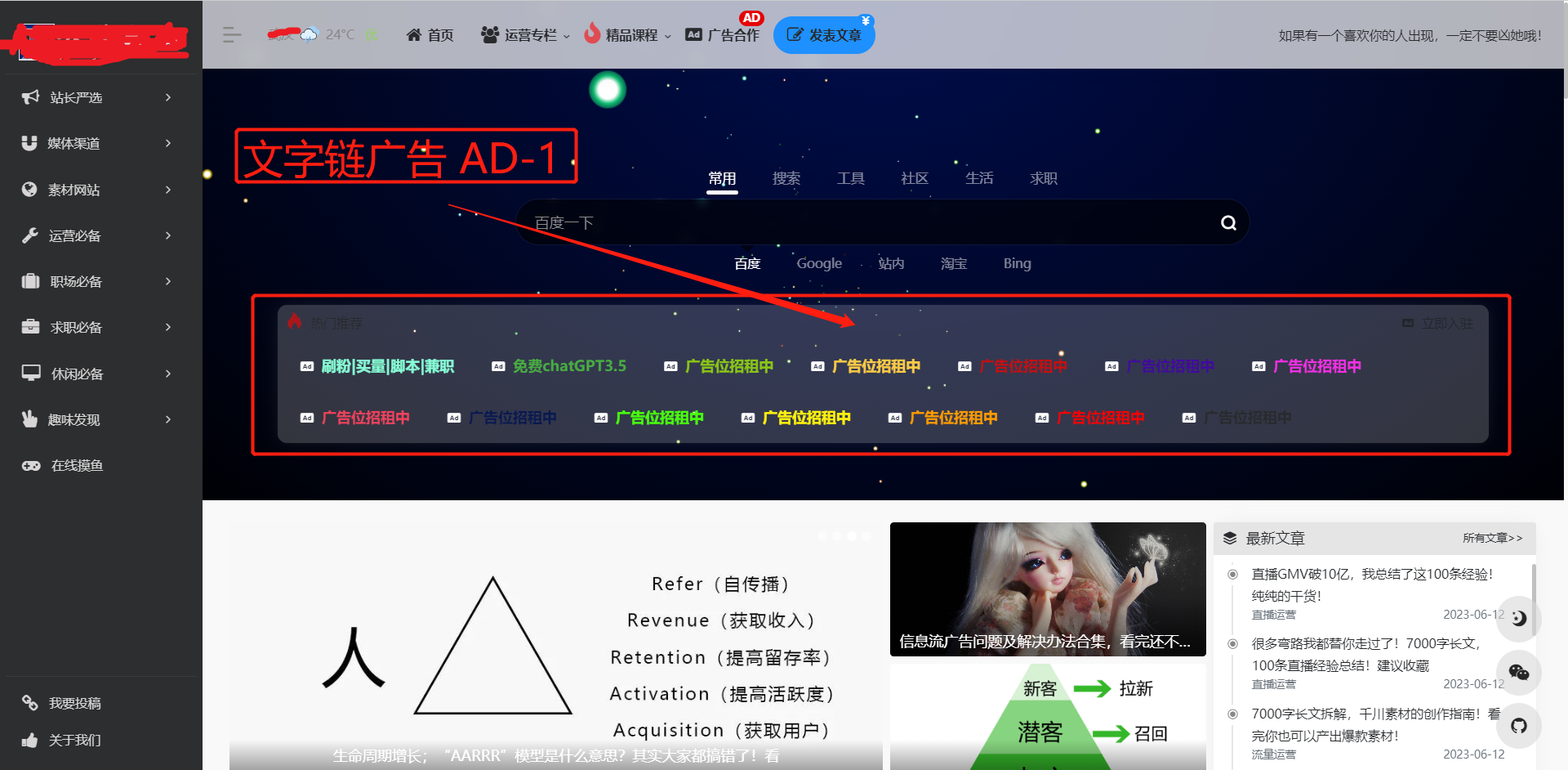 3、广告位,先打款后上广告,广告按月支付,本站不欺骗,也不要高价,【广告不做测试、也不承诺多少点击和效果、能给你带来多少利润】